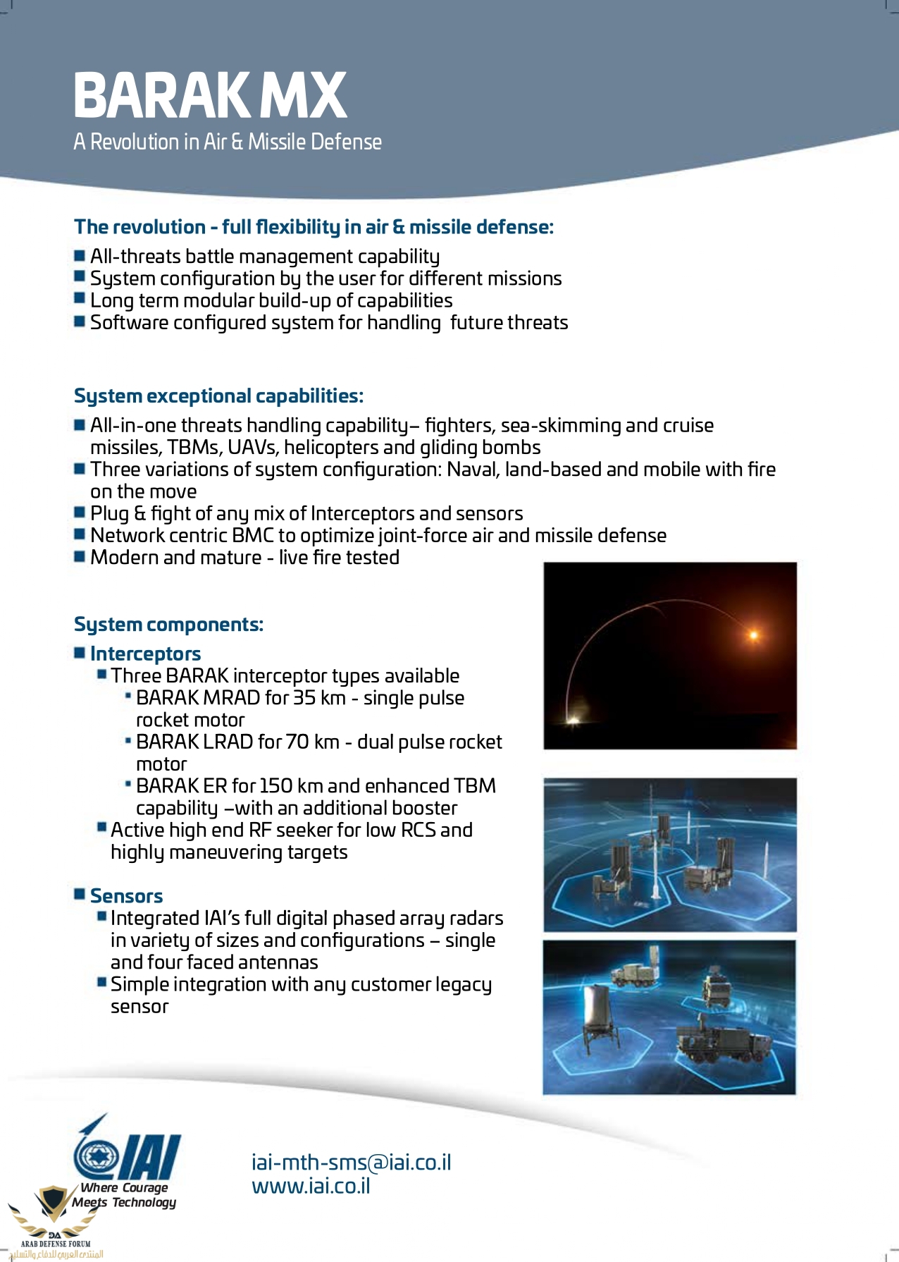 Barak MX يعني MRAD LRAD &ER الكل مدمج في باكيدج واحد .. للتعامل مع كل التهديدات و بمديات متنوعة و قوة نارية رائعة .. دون الحديث عن رادار المنظومة .. و نظرا لمستوى التهديد و ثمن الصفقة ، نقول بكـل عجرفة باي باي للخردة الروسية عند جيران الشرق .. و نقول ايضا طز في ادارة بايدن و تماطلها المكلبن .. رغم ان الباتريوت كذلك آت لا ريب فيه ..