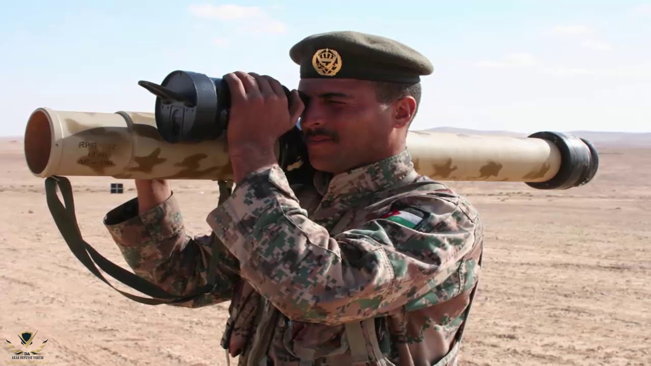 جندي اردني معه ار بي جي 32. هذا الي فعلا يسمى قاذف محمول للأفراد موب الجافلين الي سعر ذخيرته سعر صاروخ لطائرات و وزنة ثقيل جدا وكأنه برج مدرعة