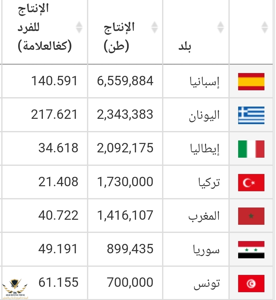 سوريا قبل تركيا بالانتاج والترتيب اسبانيا ايطاليا اليونان مو اسبانيا اليونان ايطاليا