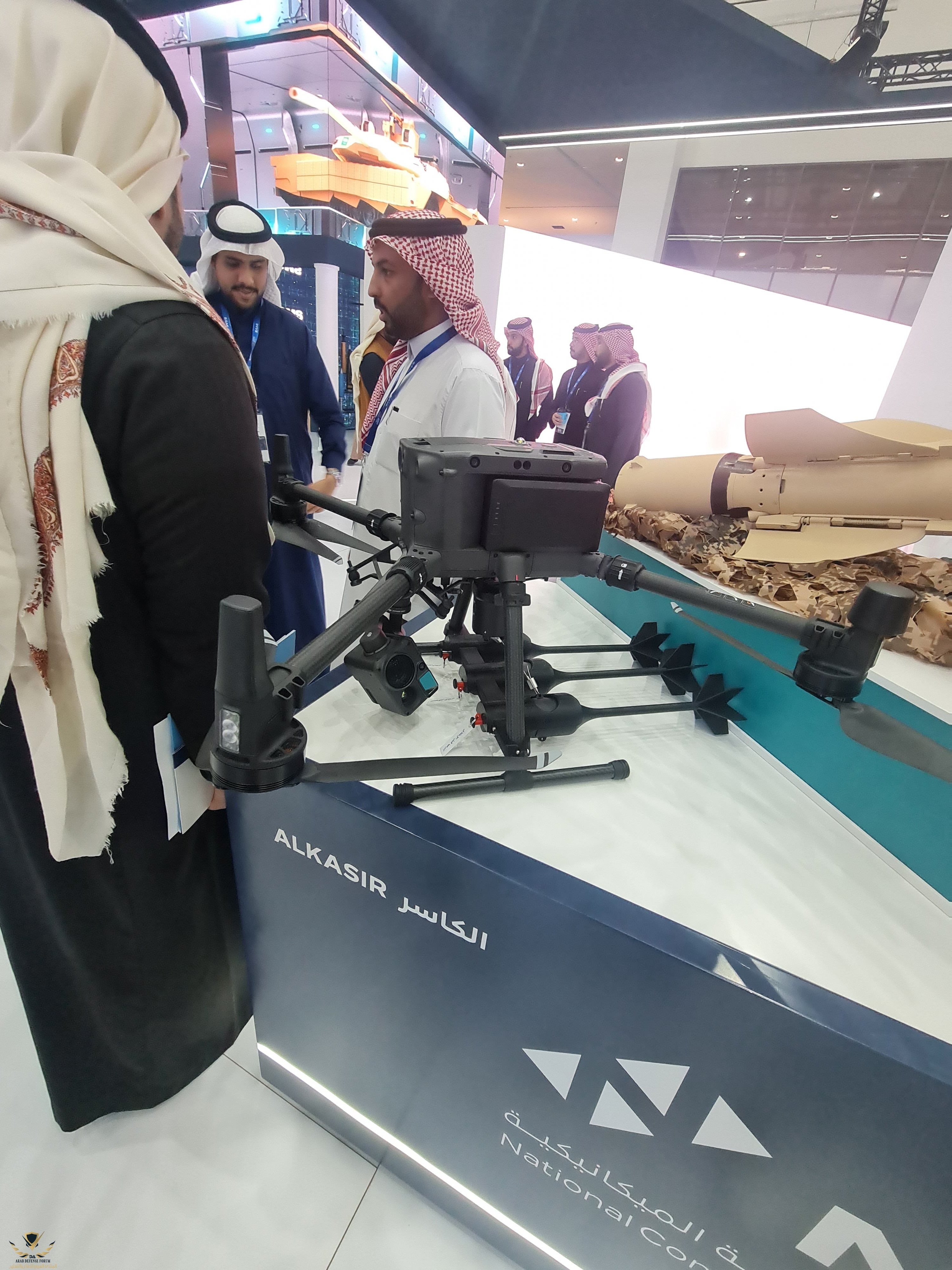 الدرون من نوع Matrice 300 وهو معروض كنموذج لقدرة دمج القنابل على درونز تجارية بينما الصاروخ الموجه هو الذي يحمل اسم الكاسر