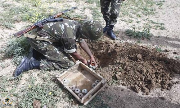 و من الصورة يمكن الحكم على انه يضع في حفرة كمية من الالغام منزوعة الصاعق قصد تدميرها