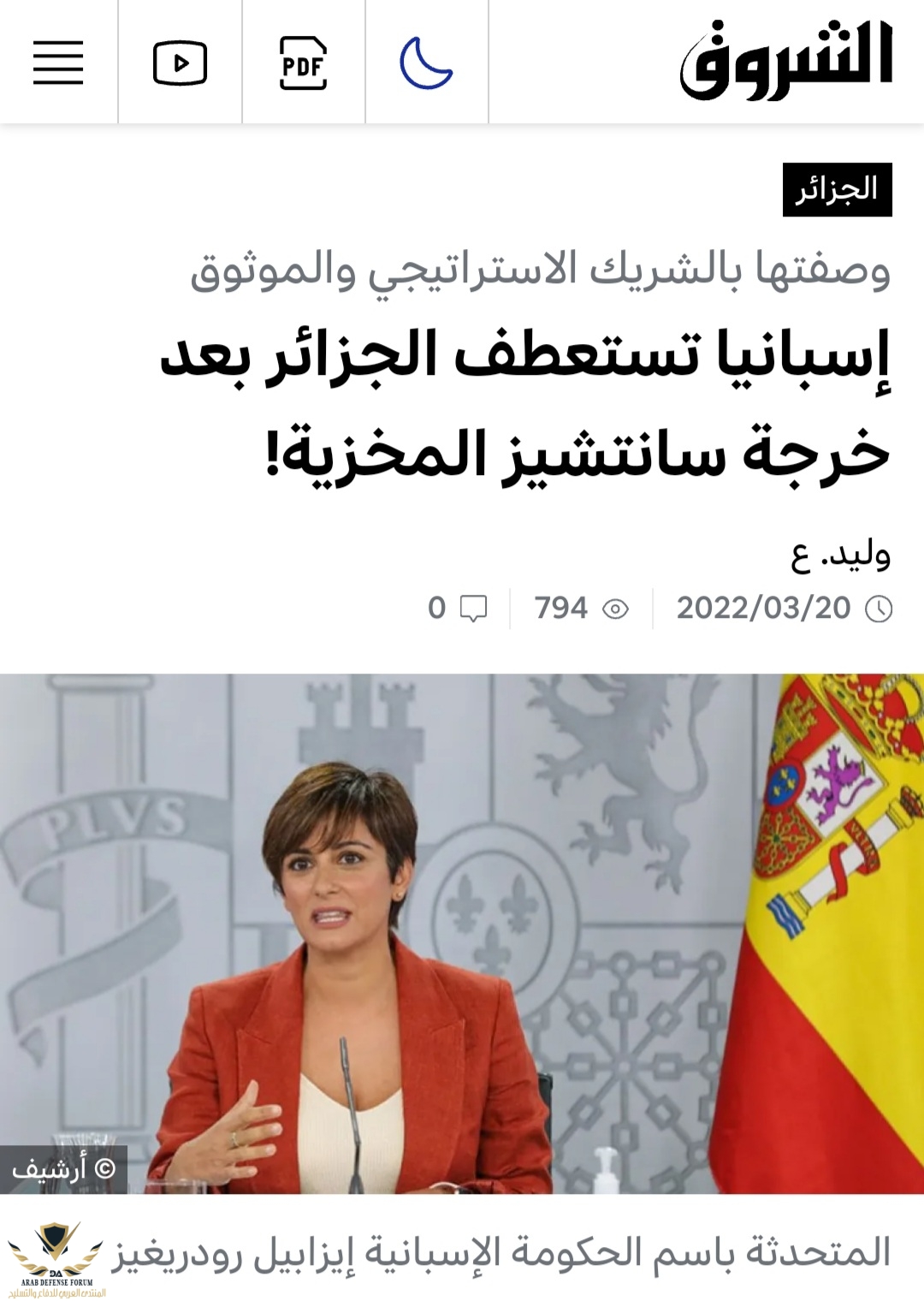 اعتراف اسبانيا بمغربية الصحراء عندهم اقوى واحزن حتى من اعتراف الجزائر لو اعترفت وذلك لقيمة الاسبان التاريخية ووزنها ومسؤوليتها في الصراع، حتى ان اعتراف الولايات المتحدة بمغربية الصحراء مر بدون رد فعل يذكر لايمانهم بان اسبانيا هي الفيصل...