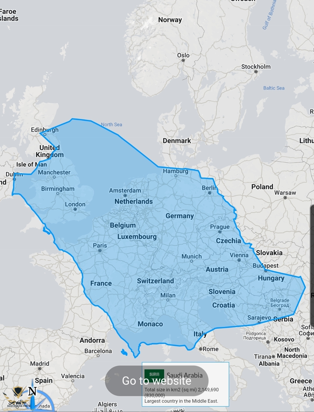 الحجم الذي ارفقته صحيح وهو معدل عن تصميم الخرائط التقليدية، وذكرت انه يعادل ثلث اوروبا تقريبا كقارة
