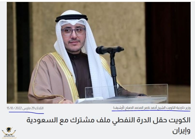 وزارة الخارجية الكويتية : المنطقة البحرية الواقع بها حقل الدرة مشتركة بين دولة الكويت والمملكة العربية السعودية واللتين لهما وحدهما حقوق خالصة في الثروة الطبيعية في حقل الدرة