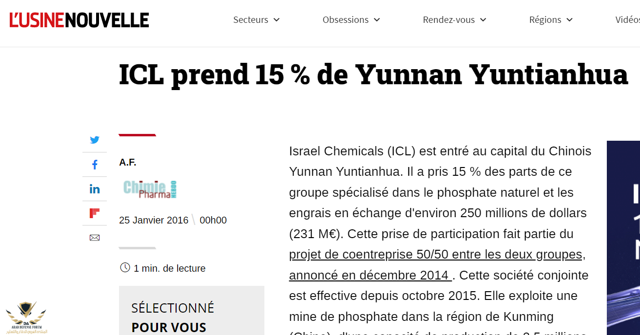 وقد وقع اليوم الثلاثاء بالجزائر العاصمة، كل من أسمدال و "مناجم الجزائر" و الشركتين الصينيتين ووهان للهندسة WUHUAN و يونان تيان ان TIAN'AN اتفاقية لإنشاء شركة ذات أسهم، خاضعة للقانون الجزائري، بغية الشروع في الأنشطة الأولية المتعلقة بتطوير مشروع الفوسفات المدمج.