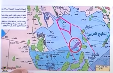 الخط الاحمر هوه الرسم الكويتي ولايؤحذ به بقانون البحار الخط الاحمر المتقطع وهوه المياه الاقليميه العراقيه باقسامها الثلاث وفق قانون البحار ويجب ان يقدمها العراق لقسم المحيطات