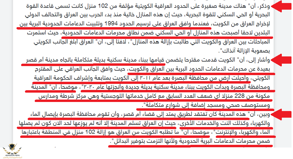أخي الكريم بالنسبة لطلبك عن الترسيم الحدودي بين العراق والكويت بخصوص أم القصر،