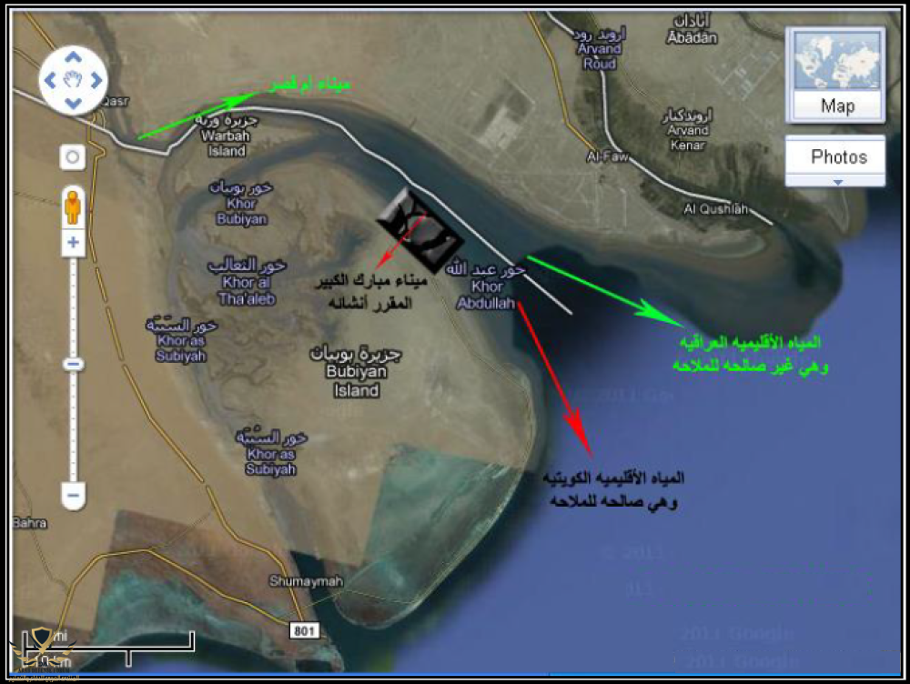 1 - في المشاركة القادمة سأضع لكم خرائط توضيحية تشرح معضلة الحدود البحرية في خور عبدالله، ومعضلة الملاحة البحرية في خور عبدالله.