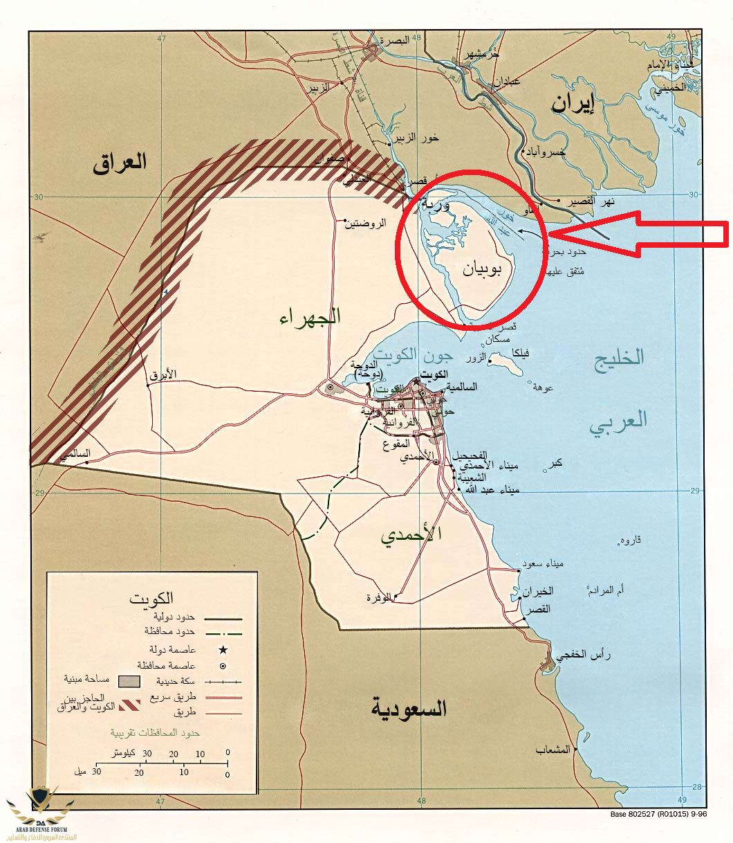 حسب خريطتك اخت عبير مو شرط تتنازل الكويت عن بوبيان. ممكن تتنازل عن خور عبدالله بالكامل و تعطي العراق متنفس اكبر على الخليج. أما كلامك عن تحرير الأحواز فهو كلام غير منطقي فكلنا نعرف عدم قدرة العراق على ذلك.