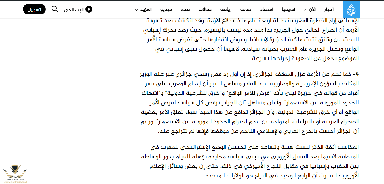 لو قدر الله و وقعت الحرب بين المغرب و اسبانيا في ازمة جزيرة ليلى كانت الجزائر ستقف مع اسبانيا قلبا و قالبا , لو لحظت هنا الجزائر تربط بين قضية جزر ليلى و سبتة و مليلية مع قضية صحراء المغربية نفس الشيء تعمل مع قضية فلسطينية تربطها مع قضية صحراء المغربية و نسيت انها تمثل في هذا الدور الطرف الصهيوني و لكن للاسف مسلم