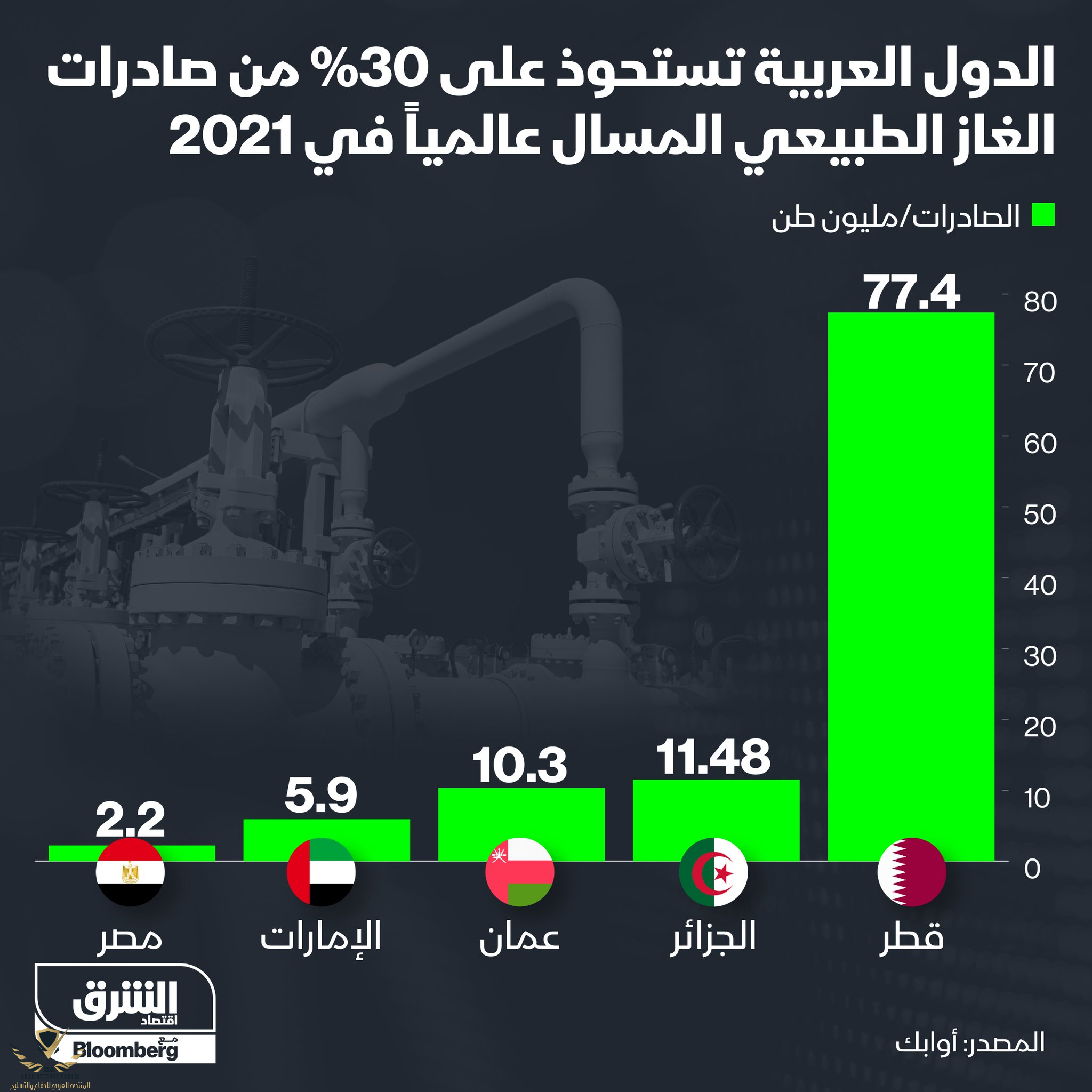 صادرات الغاز الطبيعي المسال من الدول العربية​