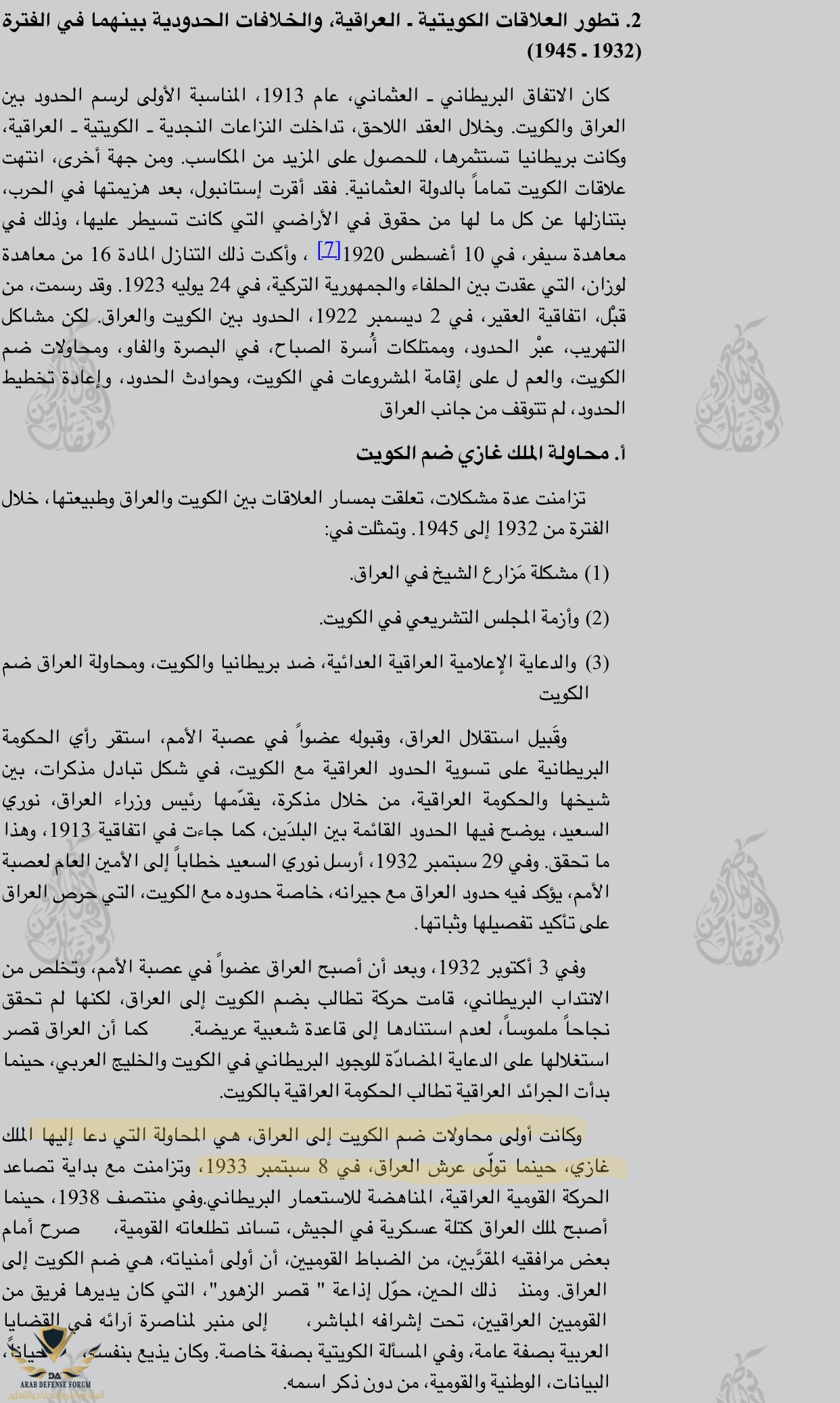 مطالبات الملك غازي ملك العراق بضم الكويت كانت عام ١٩٣٣ ميلادي