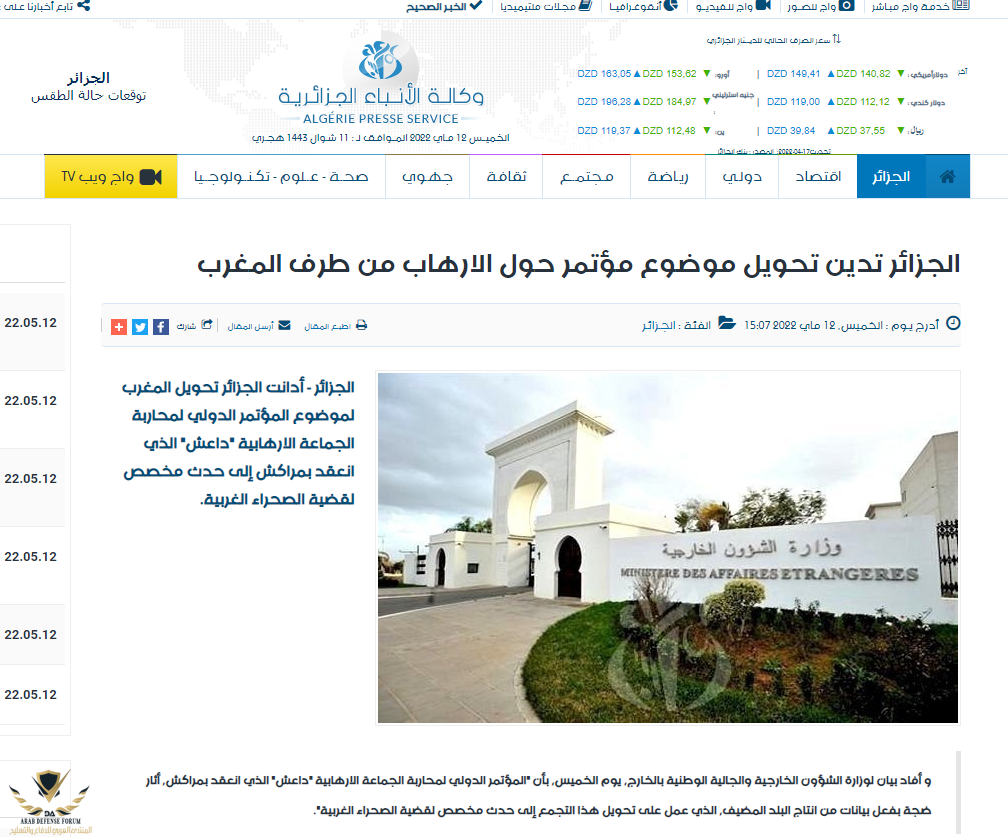 لسان الحال يقول :الجزائر تدين تحويل موضوع مؤتمر حول الارهاب من طرف المغرب