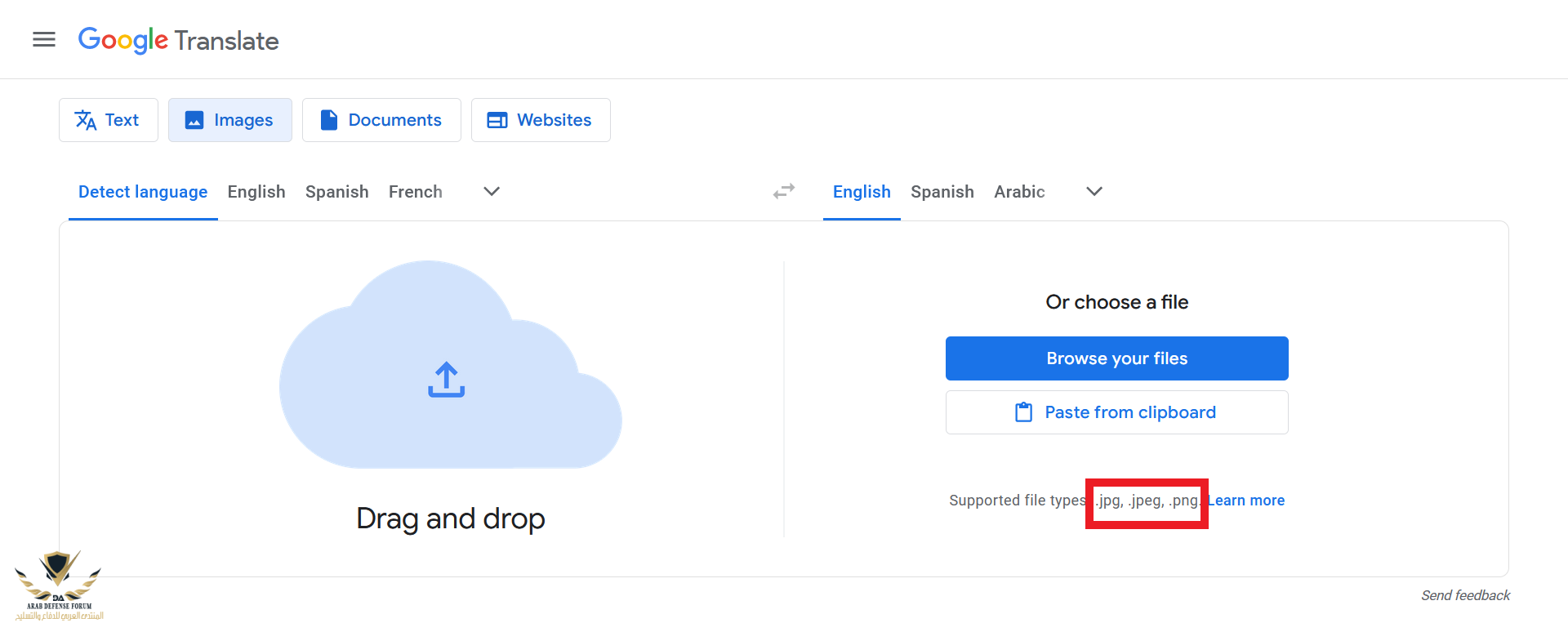 الخطوة الثالثة: إمكانية تحميل الصورة المترجمة
