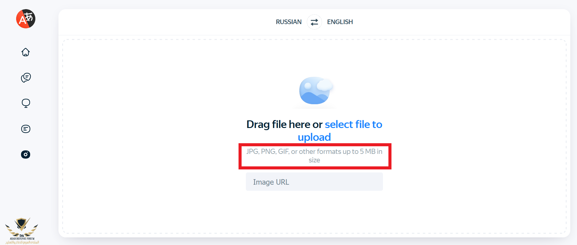 الخطوة الأولى: قم برفع الصورة على الموقع مع التأكد أن حجم الصورة لا يزيد عن 5 ميغابايت