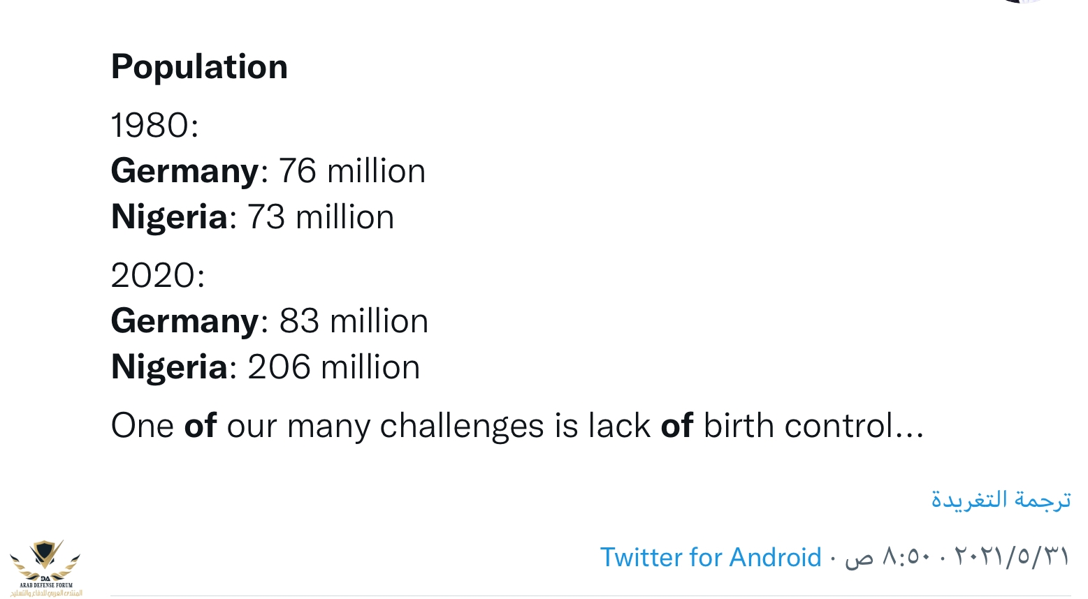 شوف مقارنه بين المانيا ونيجيريا في السكان عام 1980م وعام 2020م