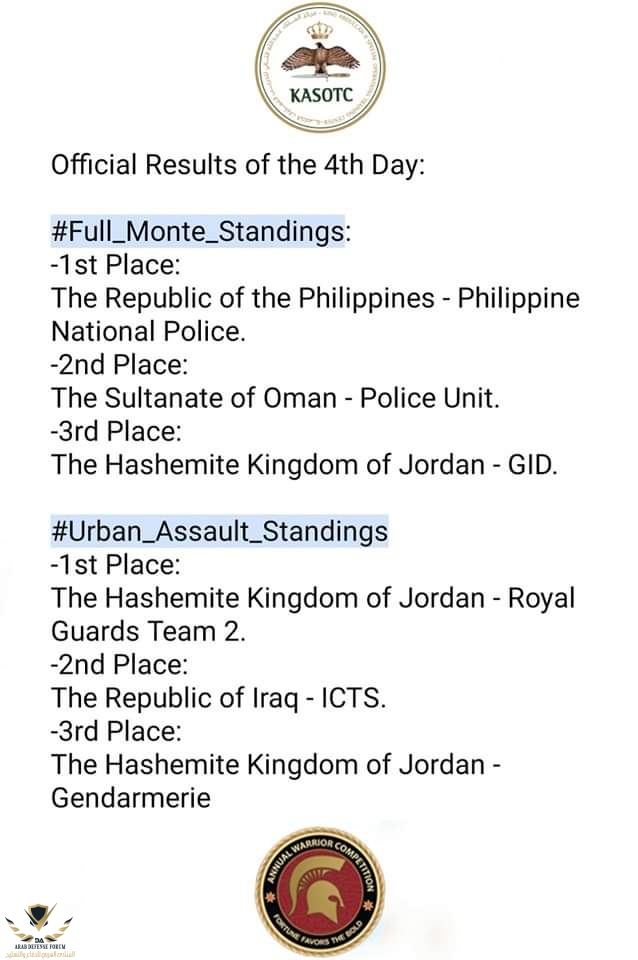 لواء الرد السريع الاردني في المركز الرابع ب 489 نقطة .