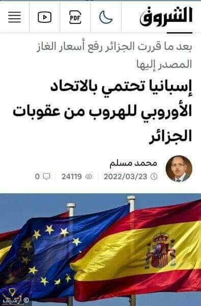 لا مكيطيبوش حيت كاين اسطوانة كتبرد عليهوم. اسطوانة هذه مؤامرة كونية من صنع الصهاينة و الولايات المتحدة الأمريكية و هي لعبة اكبر من المغرب و اسبانيا و المستهدف افريقيا و الدول القوية العظيمة الداعمة للآلهة الشيوعية روسيا .. لكن هيهات هيهات الجزائر تفطنت لهذا و هذه القرارات ليست من لا شيء بل نتيجة ذكاء الدولة الجزائرية العظمى و المروك لا يعلمون ما ينتظرهم ..عندما تقوم الجزائر بهكذا خطوات فاعلموا انها علمت بقدوم ضربة مؤلمة في الطريق، اسبانيا فتحت الباب أمام الدول الأوربية و أمنت تزويد اقتصادها بالغاز عن طريق قطر و نيجيريا و......إيطاليا هههههه، ثم قال مذا قال فرنسا في طريقها إلى تسوية شاملة لجميع المشاكل العالقة مع المغرب، ثم قال ماذا قال منذ ان سافر الملك الى فرنسا و الجزائر تغلي ههههه، ثم قال ماذا وزير الخارجية النيجيري و أغلب وزراء الدول المعنية بأنبوب الغاز النيجيري المغربي في اجتماع بالمغرب، ثم قال مذا المغرب قد ينضم الى اسبانيا و البرتغال لتنظيم كاس العالم بدعم من الاتحاد الافريقي و الاتحاد العربي و الاتحاد الاوروبي و امريكا و أنفانتينو..... ثم قال مذا،