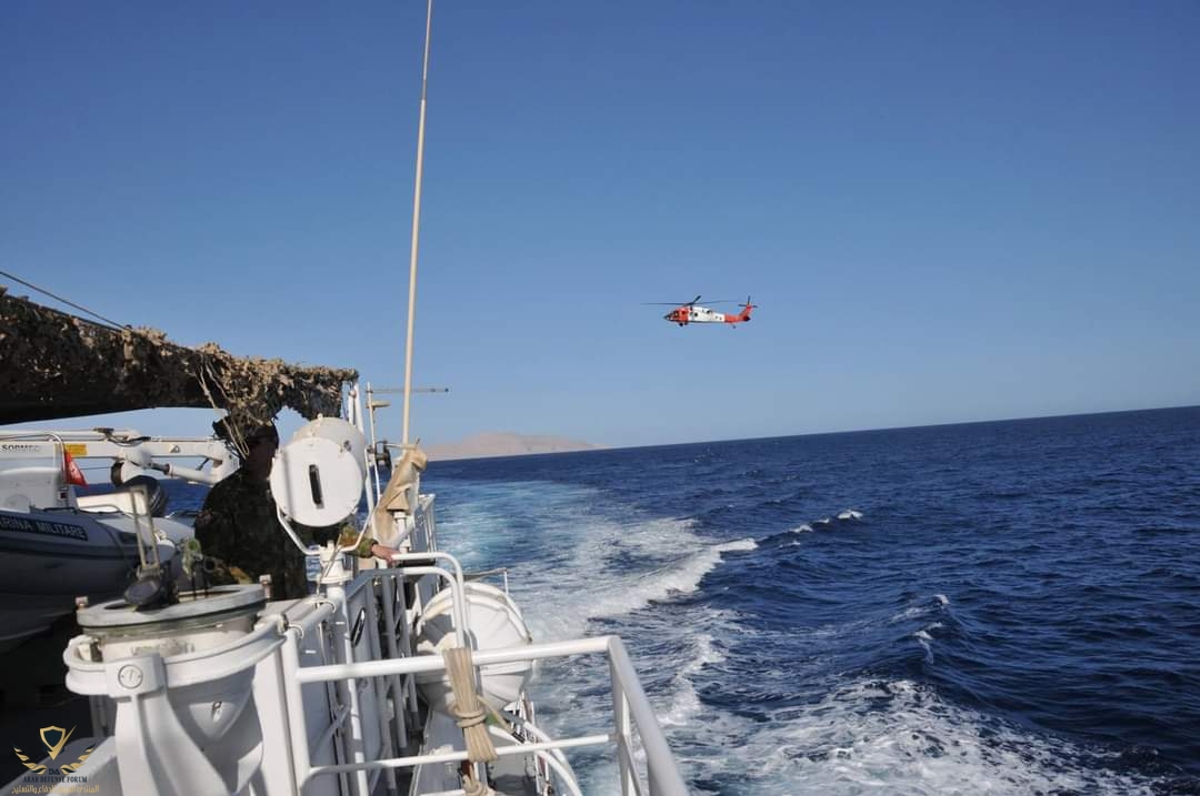 تمشيط قوات متعددة الجنسيات للمنطقة البحرية C الواقعة بين تيران وصنافير وشرم الشيخ لتاكد من حرية الملاحة عبر المروحيات والسفن