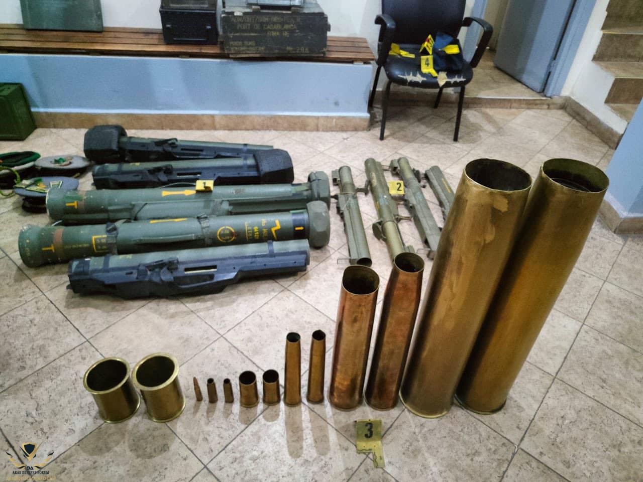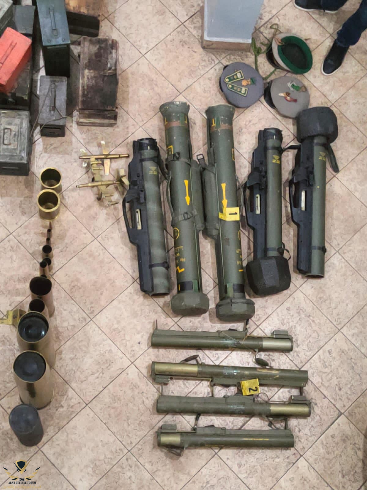 و كما تم حجز معدات حربية داخل منزله تشمل مضادات للدروع