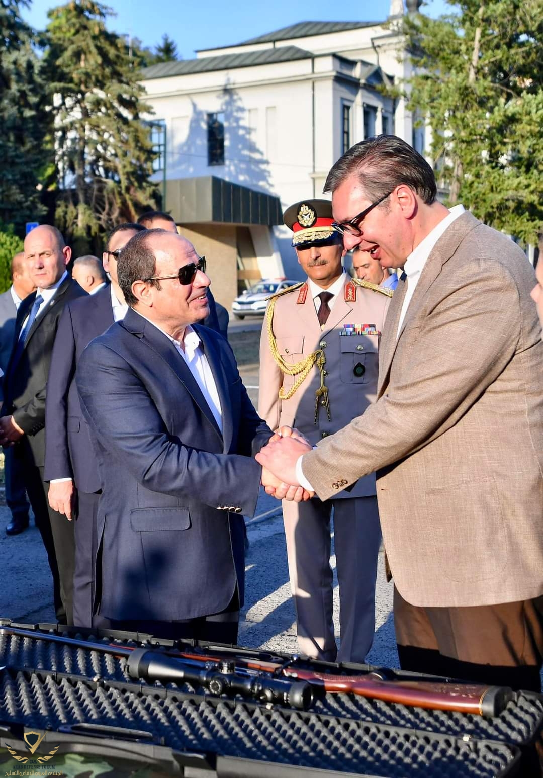 السيد الرئيس عبد الفتاح السيسي يحضر برفقة الرئيس الصربي ألكسندر فوتشيتش عرض لأسلحة القوات المسلحة الصربية والمعدات العسكرية الدفاعية من الصناعة المحلية، وذلك في ساحة التدريب في أرض الحراسة العسكري في العاصمة بلجراد.