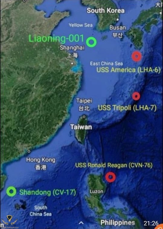 رست امريكا تقريبا 7 مجموعات حاملات طائرات امام الصين وحدها في تدريبات (تهديد) او رد على امر ما حينها ، و بلعها الصينين برعب و من حينها ينتجون القطع بحرية و لا انها ثلاجات من خطوط الانتاج للوصول الى تلك القدرة