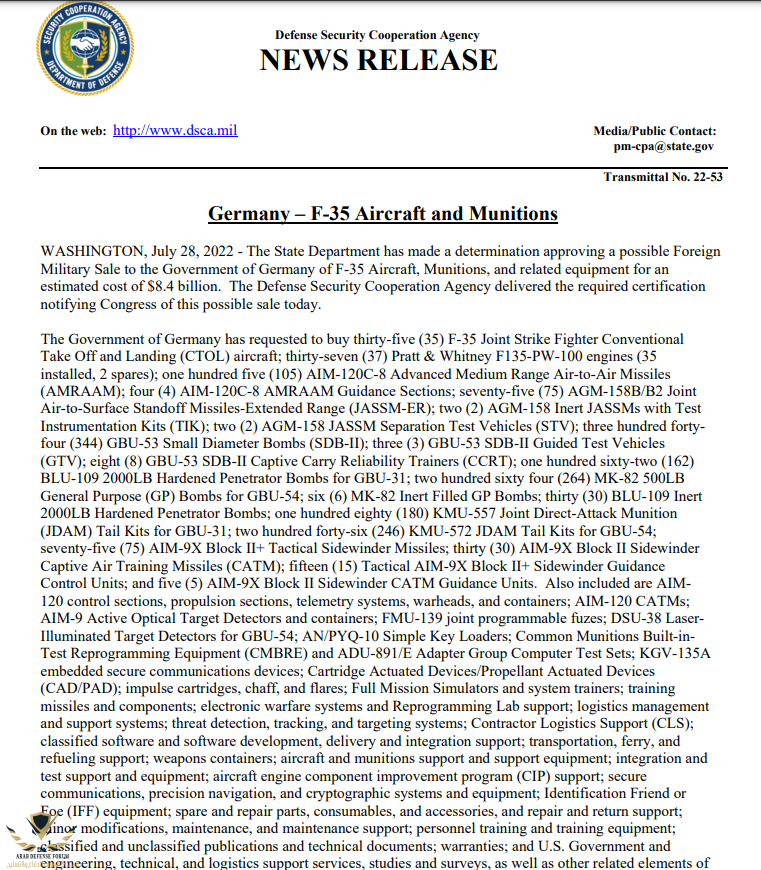 الصفقة تشمل ذخائر بمختلف الأنواع ومعدات اخرى .240 مليون للطائرة ؟![]()