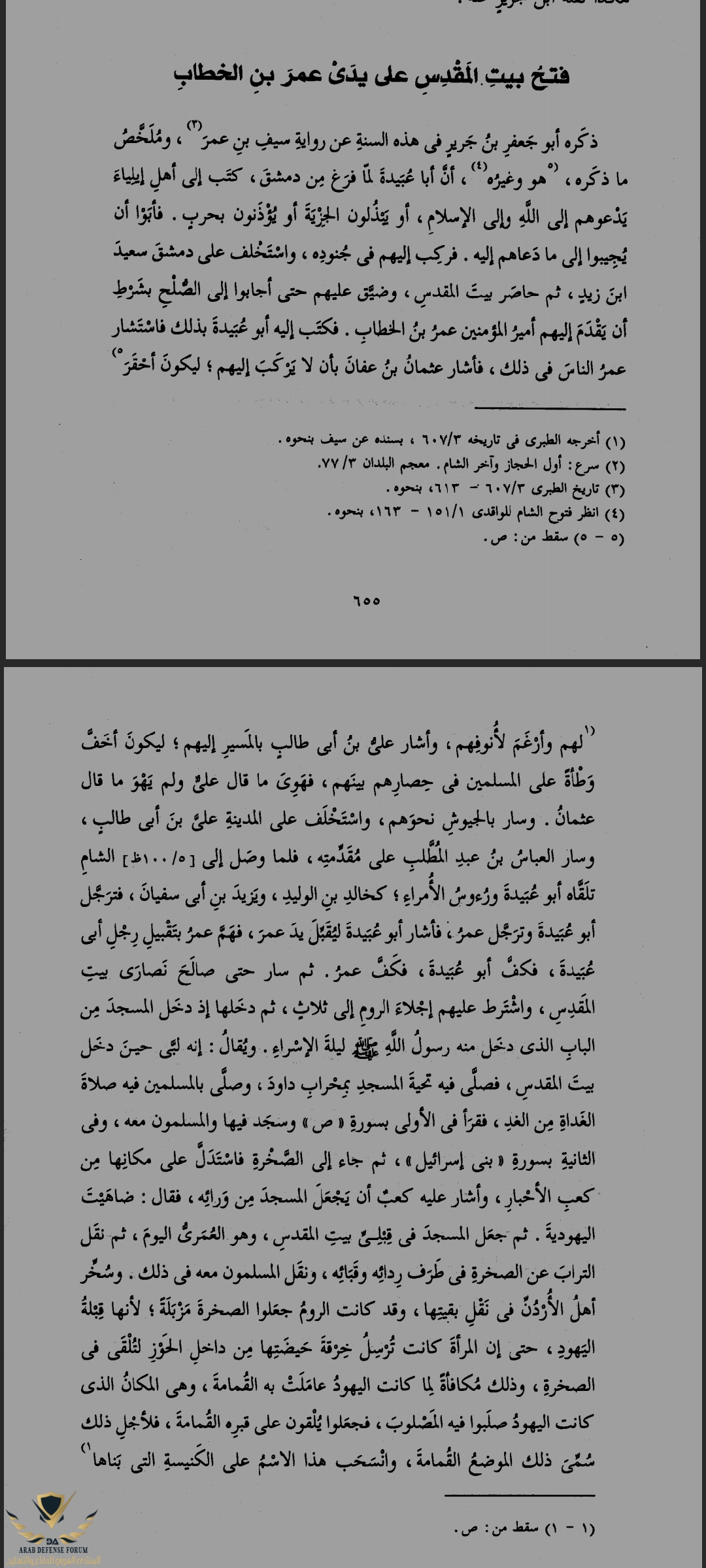 الراوي نقل هذا لكنه لم يقل أن عمر رضي الله عنه قال ان هذا هو المسجد الاقصى ولم يذكر أنه يهتم لأمره ولم يذكر ان عمر رضي الله انكر صخرة اليهود ومقدساتهم ولم يذكر انه احدث مسجداً على صخرة اليهود