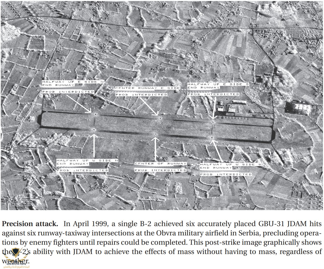 الصور تعود لسنة 1999 اثناء قيام القوات الأمريكية بقصف قاعدة صربية جوية باستخدام قاذفة B-2 مع قنابل الـJDAM