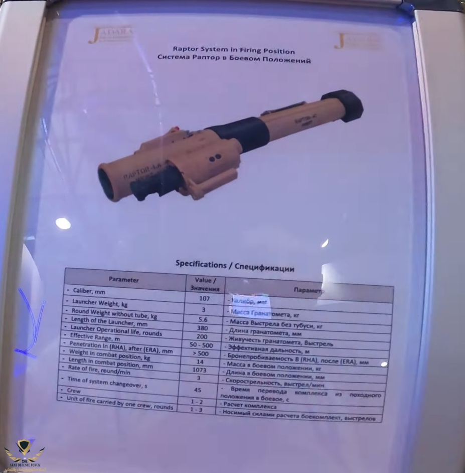 للتوضيح هنالك صاروخين الأول اسمه رابتر وهو من فئة الاربيجي او لاو مداه ٥٠٠ متر مثل المشاب بالنمط المباشر