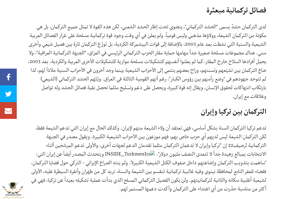 عزيزتي اني اعرف عشيره عشيره من التركمان ومنهم من انضم للواء عشائر عربيه مثل أل بيات منهم سنه ومنهم شيعه