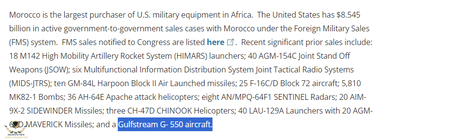 The Royal Moroccan Air Force will use this new aircraft to provide safe, secure, and dedicated air transport for its Head of State.غولف ستريم واحدة تحيلنا إلى خبر تجهيز طائرة استخبارات لعميل مجهول على اساس طائرة تجارية