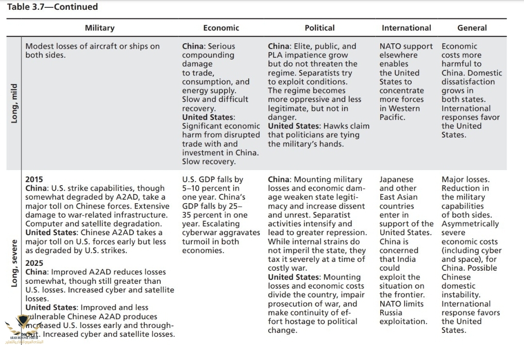 نقطة مهمة نسيت أذكرها وهي إن التقرير بيحاكي أربع سيناريوهات محتملة للحرب .