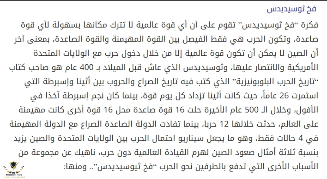 كله ده يتلخص بمصطلح "مصيدة ثيوسيديدس" .