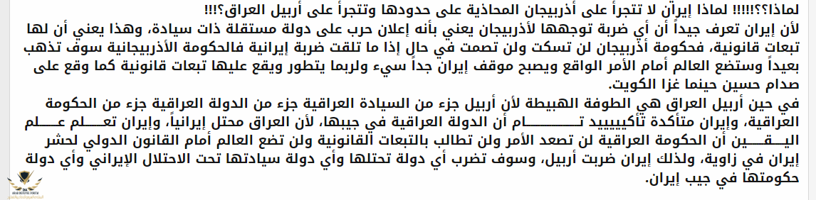 ولذلك قلت للعضو أبو كالد في موضوع آخر؛ إيران تتجرأ على قصف العراق، ولن تتجرأ على قصف أذربيجان أو البحرين،