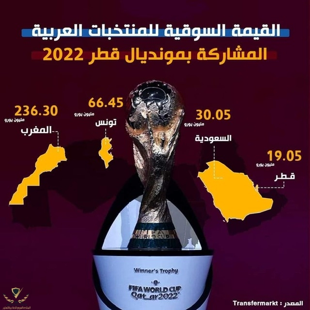 إليكم القيمة السوقية للمنتخبات العربية المشاركة في مونديال قطر 2022...