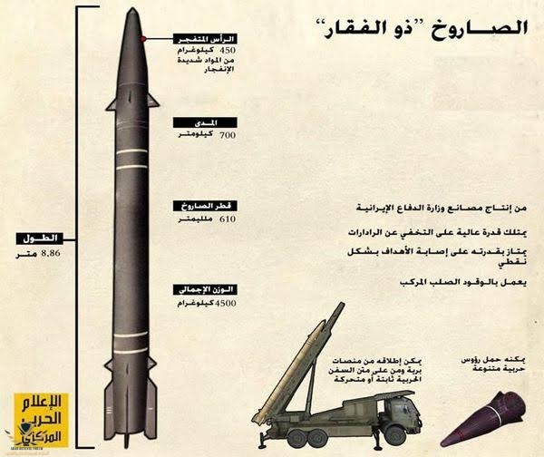 "ذو الفقار": صاروخ باليستي مداه 700 كيلومتر.