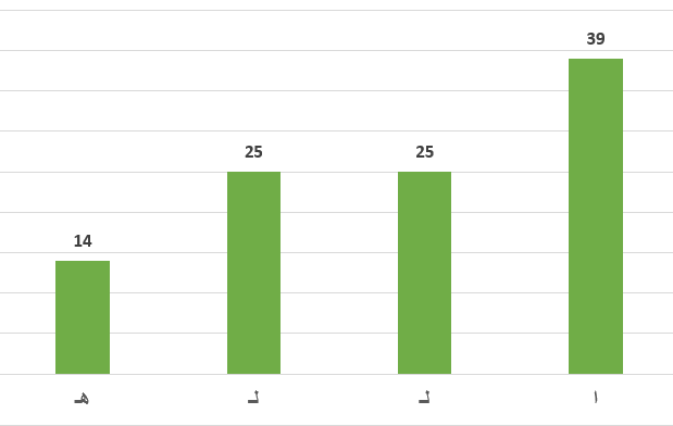 تأمّل تمثيل حروف اسم { اللَّه } في رسم بياني بحسب تكرارها ضمن الحروف المقطَّعة: