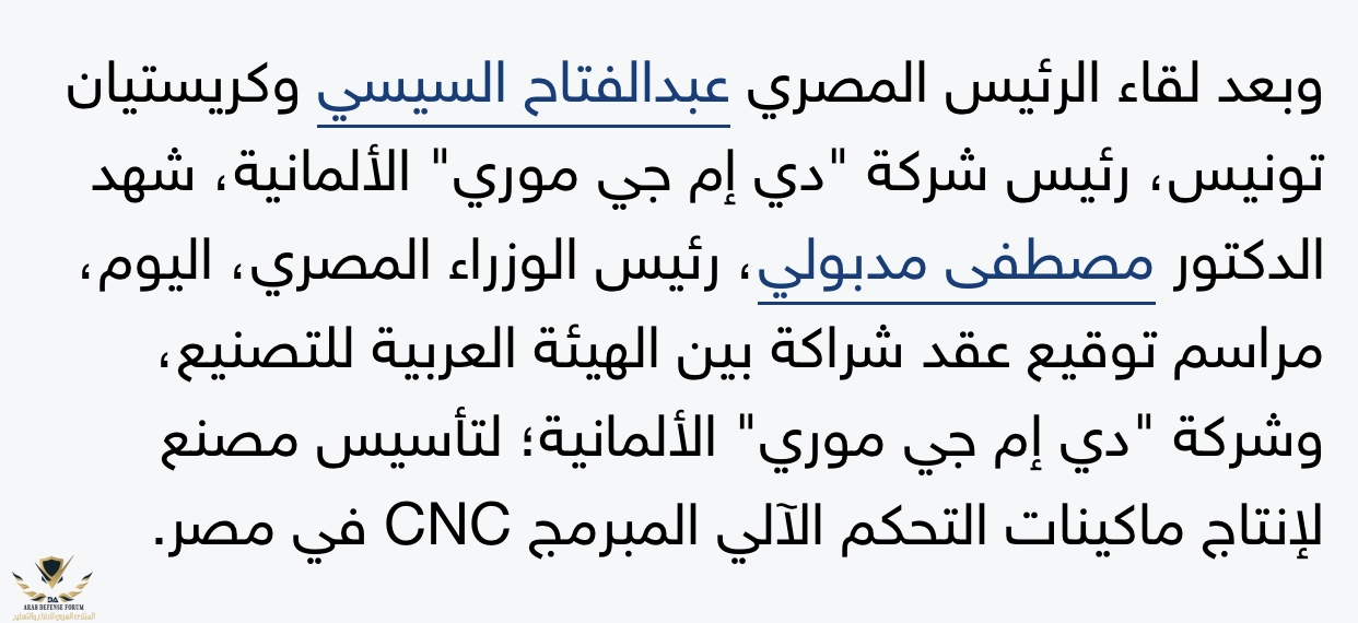 كذلك يوجد اسلحه كثيره كان ممكن تنتجها مصر من جنوب افريقيا من المدفع للطياره ولكن اظن ان العنطزه وموضوع احنا الفراعنه رابط يدين مصر للاستفاده من جيرانها الافارقه وصلى الله وبارك