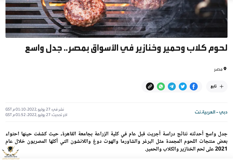 العربية: لحوم كلاب وحمير وخنازير في الأسواق بمصر.. جدل واسع