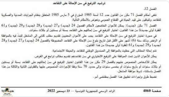 صدر بالرائد الرسمي للجمهورية التونسية في نسخته الأخيرة اليوم الجمعة 23 ديسمبر 2022، مرسوم عدد 79 مؤرخ في 22 ديسمبر 2022 ويتعلق بقانون المالية لسنة 2023.