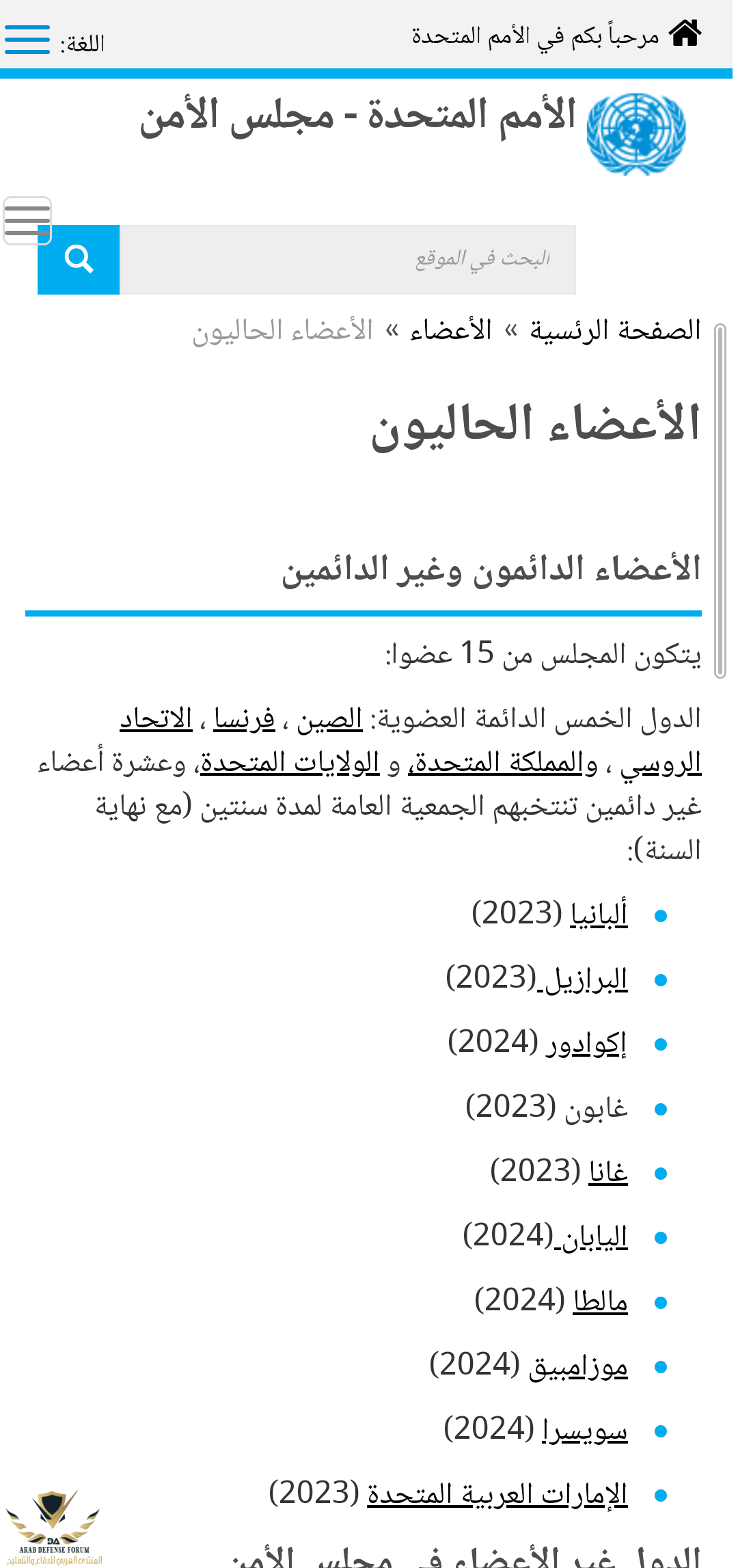 الأعضاء الدائمون وغير الدائمين يتكون المجلس من 15 عضوا: الدول الخمس الدائمة العضوية: الصين ، فرنسا ، الاتحاد الروسي ، والمملكة المتحدة، و الولايات المتحدة، وعشرة أعضاء غير دائمين تنتخبهم الجمعية العامة لمدة سنتين (مع نهاية السنة): ألبانيا (2023) البرازيل (2023) إكوادور (2024) غابون (2023) غانا...www.un.org
