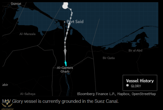The M/V Glory has run aground while joining the Southbound convoy near El-Qantarah, a north-Eastern Egyptian city along the Suez Canal, and tug boats are trying to refloat the vessel, shipping agency Leth Agencies said in a tweet on Monday.
