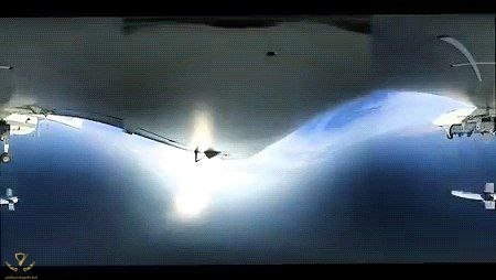 اولاً، ظهور لقطة لطائرة مسيرة و هي تطلق قنبلتين من طراز قائم على هدف عائم في البحر.