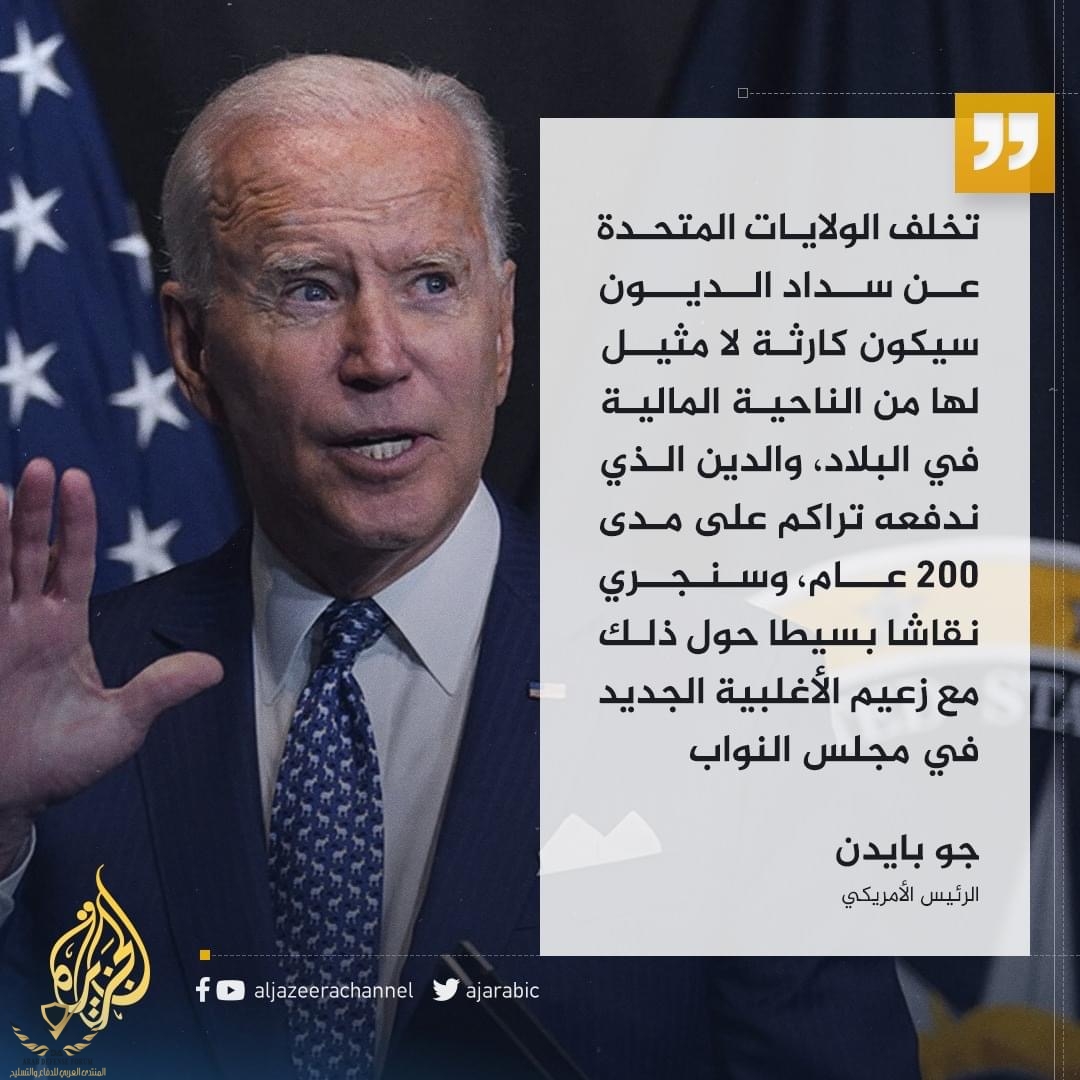 وسط تحذيرات من أزمة مالية بعد وصول الدين العام الأمريكي إلى ذروته وهو 31.4 تريليون دولار لأول مرة في التاريخ.. #بايدن: تخلف الولايات المتحدة عن سداد الديون كارثة