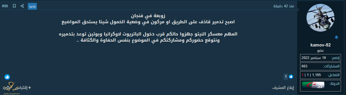 نفسه الذي كان ينشر اخبار شبح كييف و وفاة شويغو و مرض بوتين و وصول اسلحة صينية و غيرها من البروباغاندا الفارغة