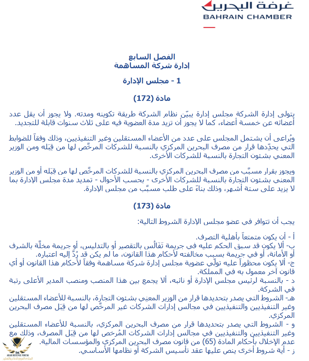 تفضل المادة رقم 173 من قانون الشركات التجارية في البحرين يقول الآتي 👇
