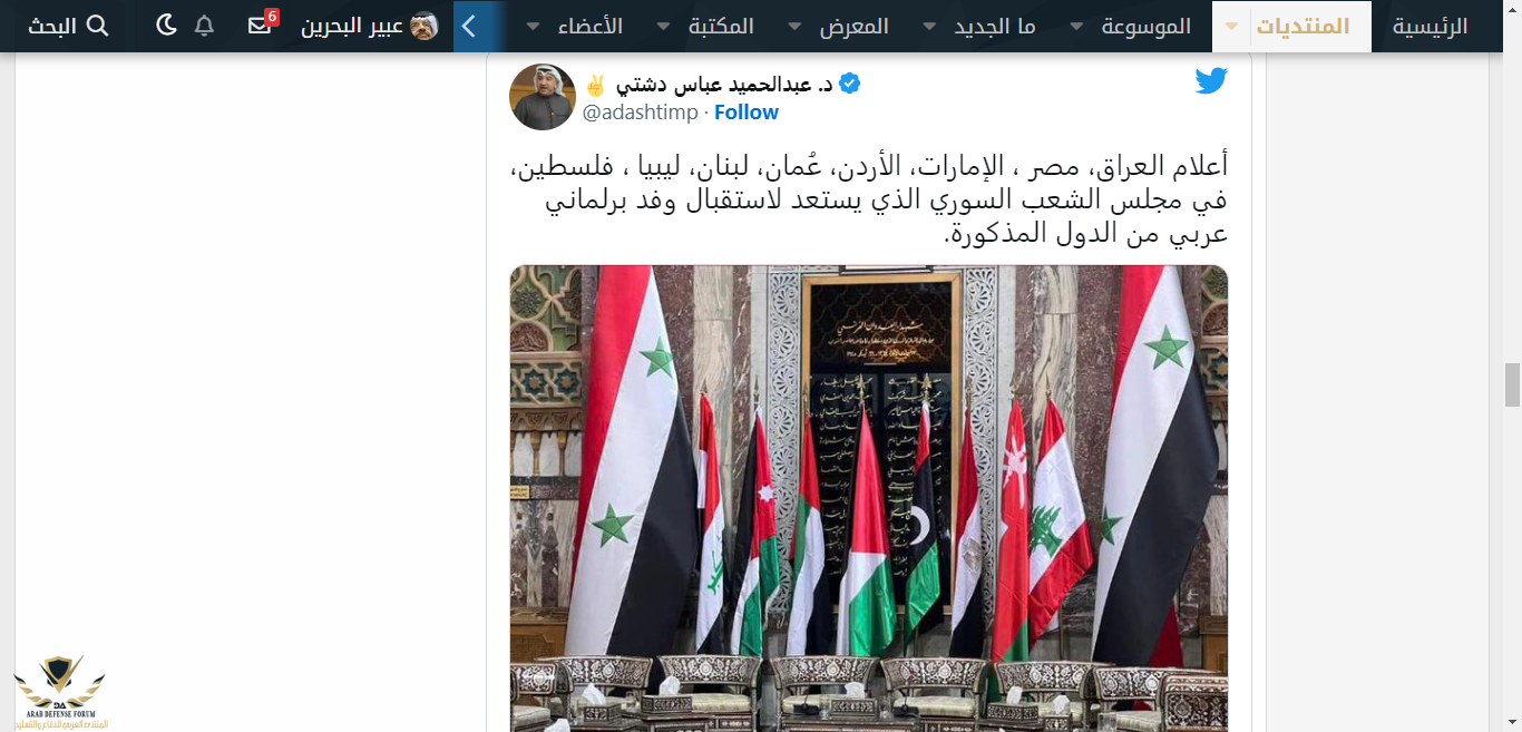 *** ملاحظة: بقية الوفود من الدول العربية الأخرى بعد الانتهاء من المؤتمر في العراق بدلاً من أن يرجعوا إلى بلدانهم ذهبوا إلى سوريا، يبدو أن النائب العراقي الحلبوسي "رئيس الاتحاد البرلماني العربي" أقنعهم بزيارة سوريا وقام بترتيب الزيارة .. هكذا قرائتي للمشهد والله أعلم.