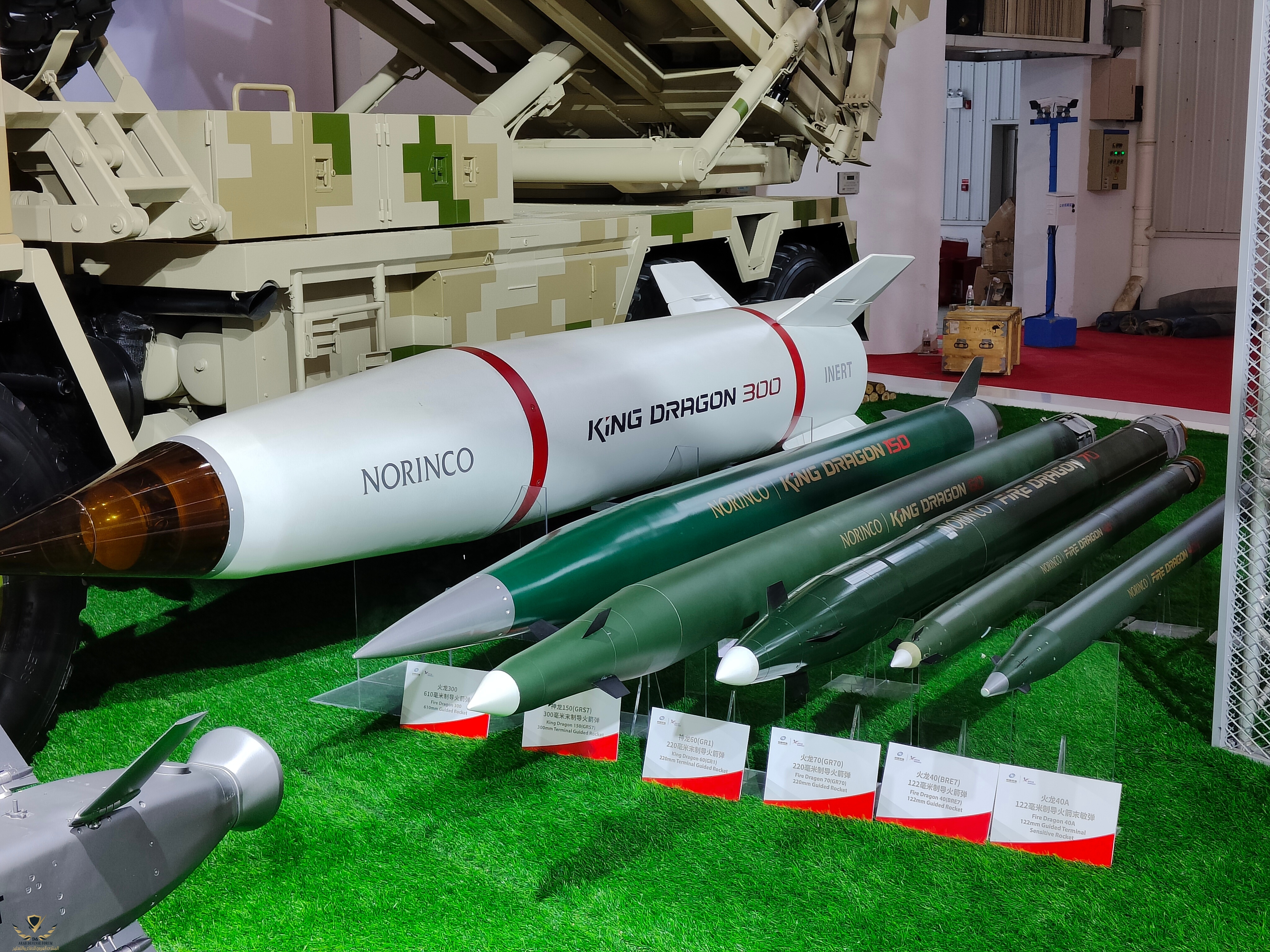 the SR5 was displayed with new types of rockets and loitering munition including Fire Dragon 40 122mm guided and unguided rockets, 220mm Fire Dragon 70 guided rocket (GR70), 220mm King Dragon 60 (GR1) Terminal Guided Rocket, 300mm King Dragon (GRS7) Terminal Guided Rocket, 610mm Fire Dragon 300 Guided Rocket as well as Dragon 60A and 60B loitering munition also called suicide drones.