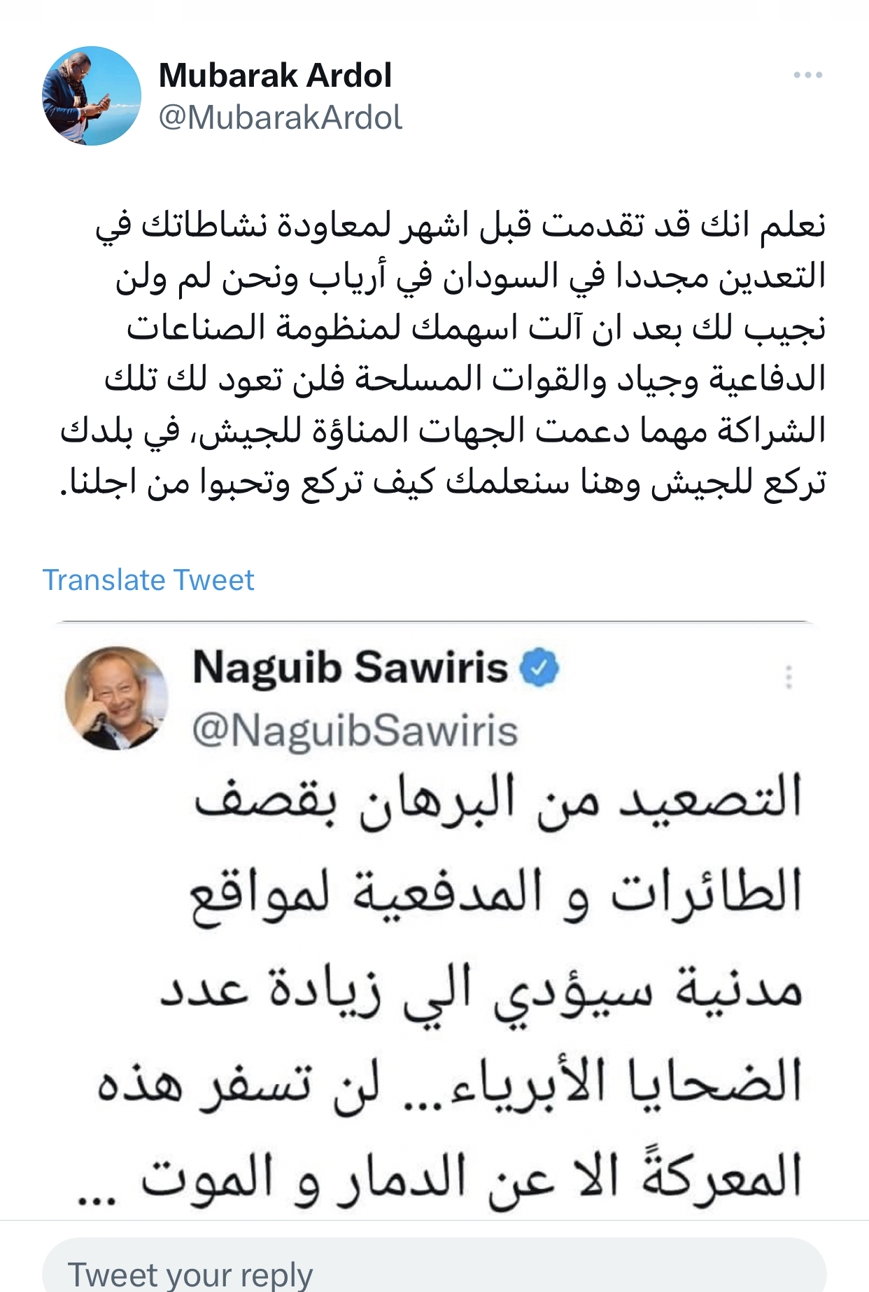 حسب المشاهد وتوالي الاحداث اعتقد ان اسر العشرين جندي حراسات المصرين لقاعده مروي كان جزء من مخطط حميدتي ومن يقف خلفه لاخراج مصر من الوضع السوداني او جعلها محايده لحين تنفيذ او تثبيت وضع جديد في السودان واعتقد ان الامر ناجح حتى الان لكن السؤال المطروح ماذا ستفعل مصر بعد ذلك سواء تم تسليم الجنود او استمرارهم في الاسر الدعم السريع خلفه جهات ومؤيدين اقليمين ورجال اعمال تويتات نجيب سويرس نفسه وهو رجل اعمال مصري كلها مع حميدتي وقوات الدعم السريع وضد البرهان الامر له علاقه بمناجم الذهب ومصالح دول لتثبيت حميدتي واقصاء البرهان